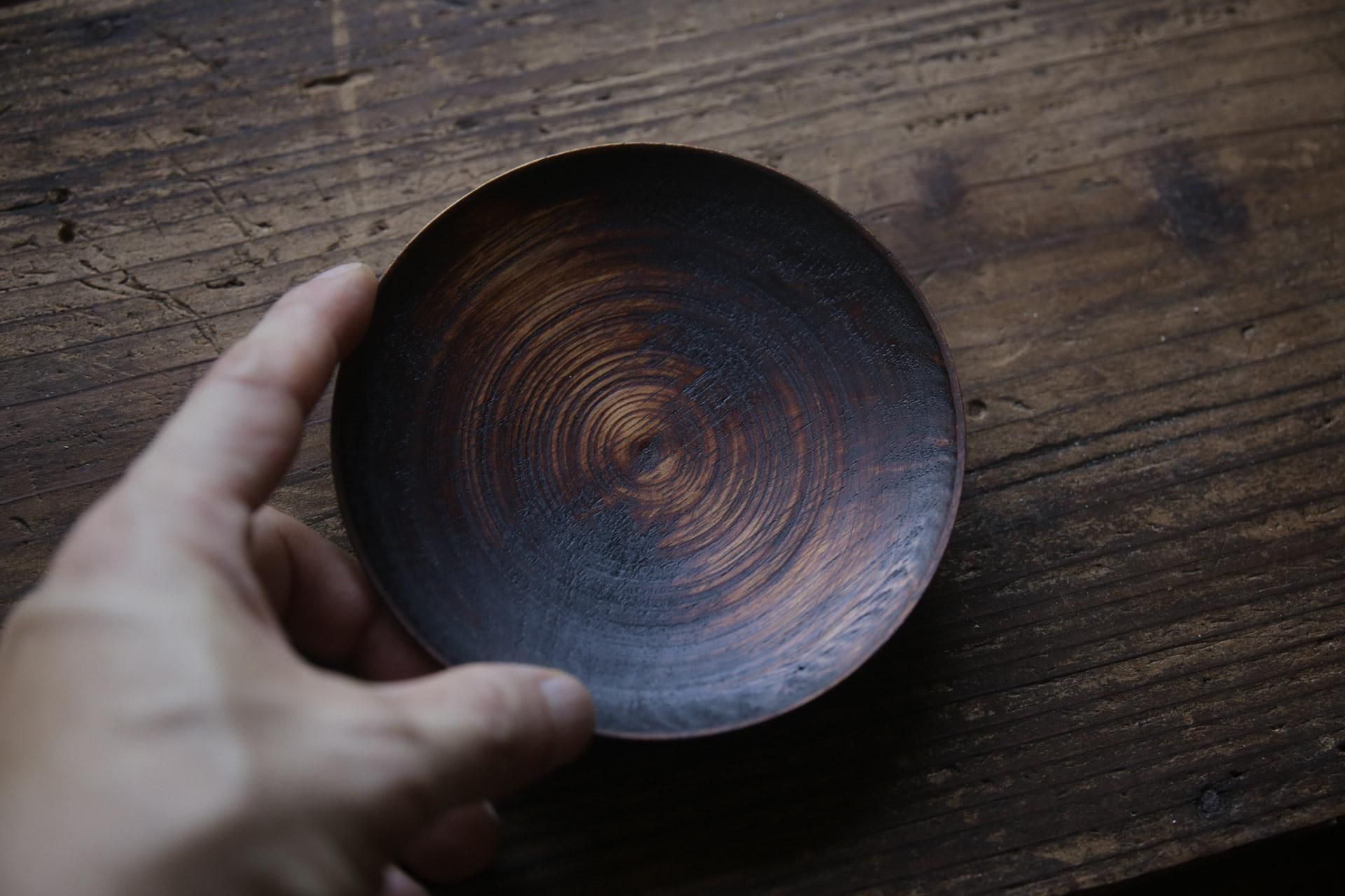 椎の木を削り出し、拭き漆で仕上げたお皿になります。